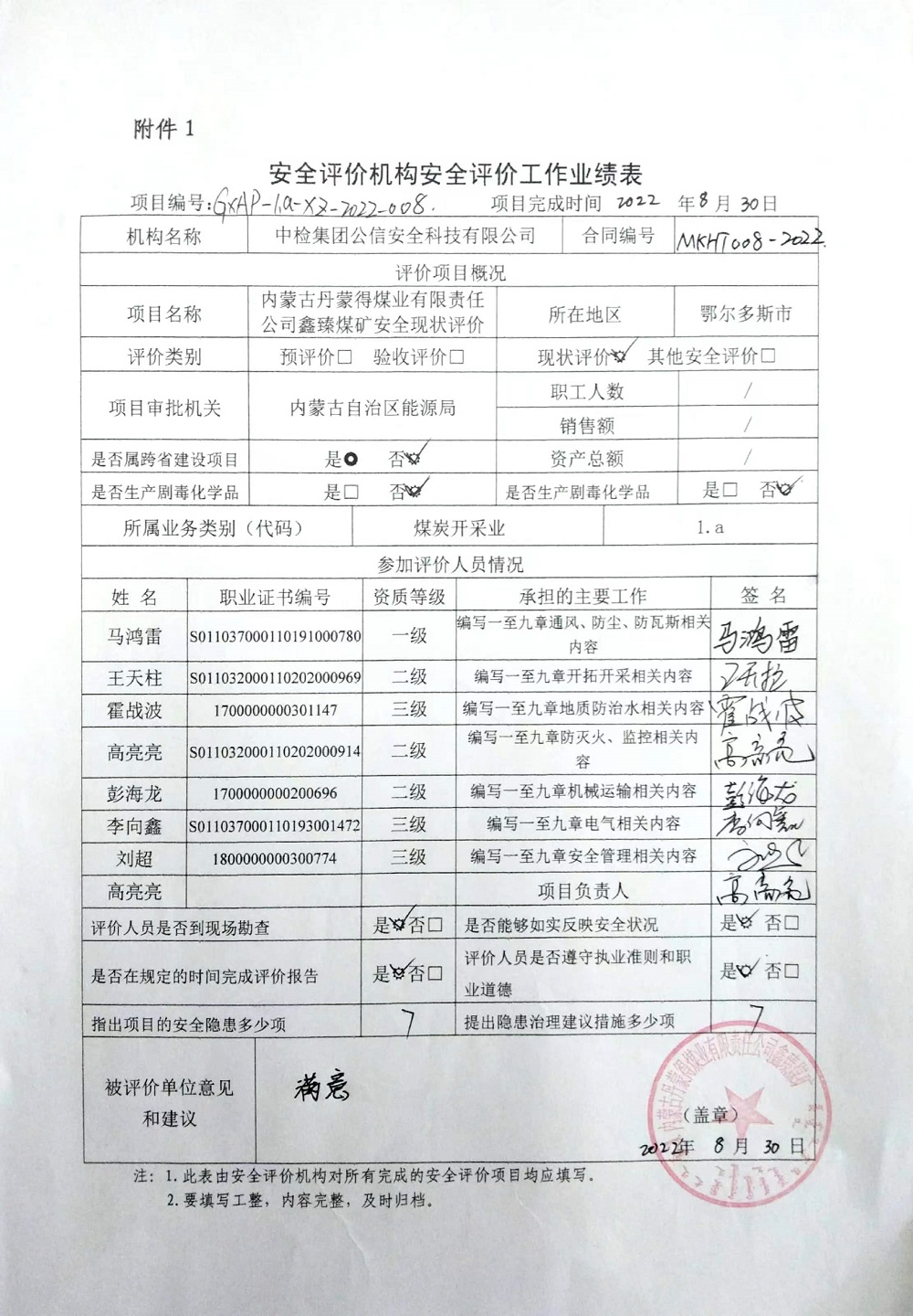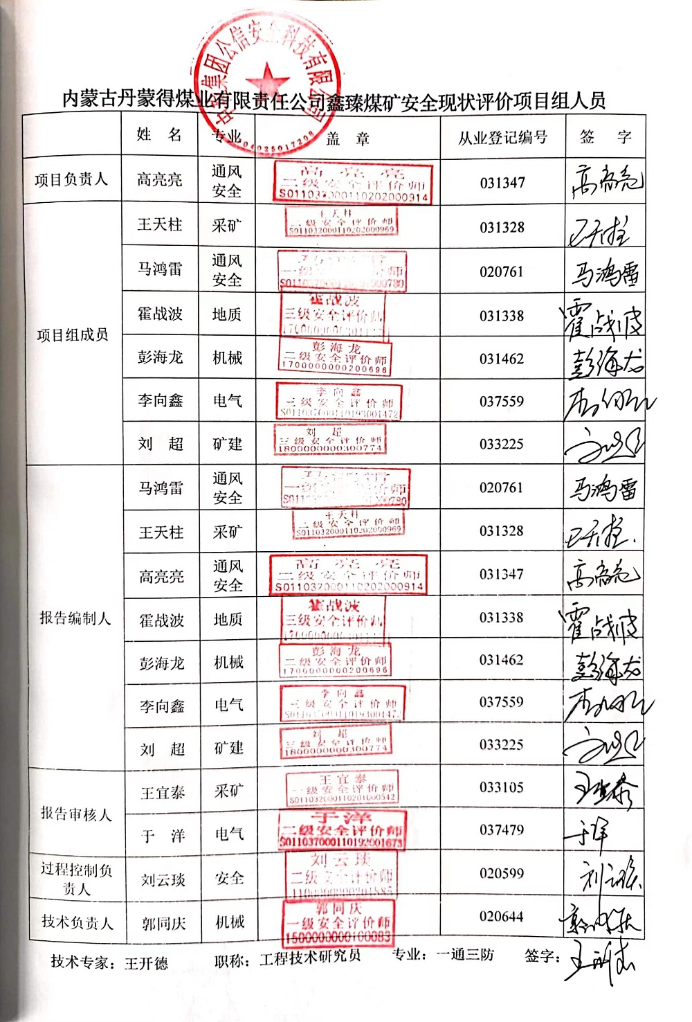 評價項目名稱 | 內(nèi)蒙古丹蒙得煤業(yè)有限責任公司鑫臻煤礦安全現(xiàn)狀評價報告 | ||||||