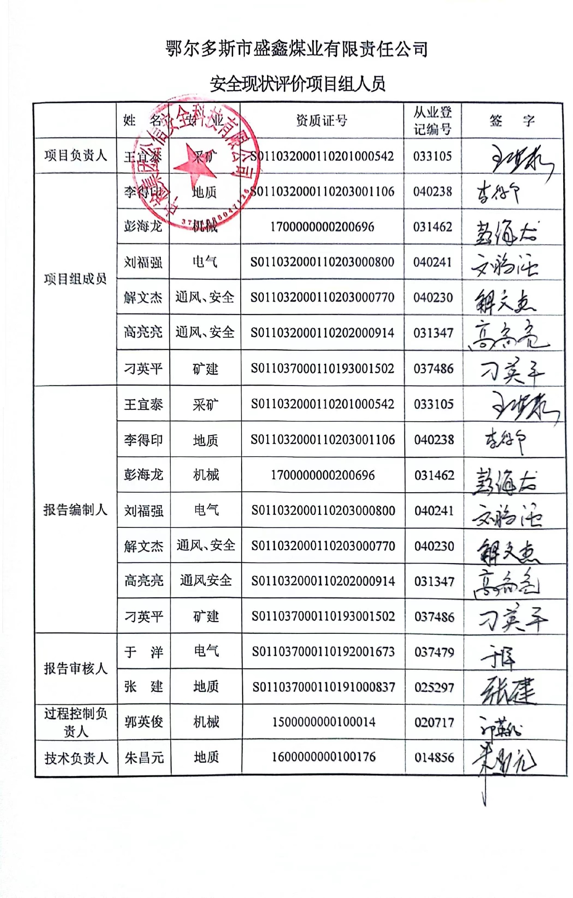 參與安全評價工作的注冊安全工程師: 王宜泰、高亮亮、彭海龍 | |||||||