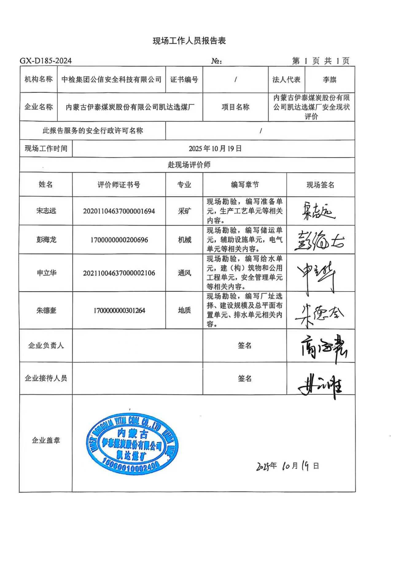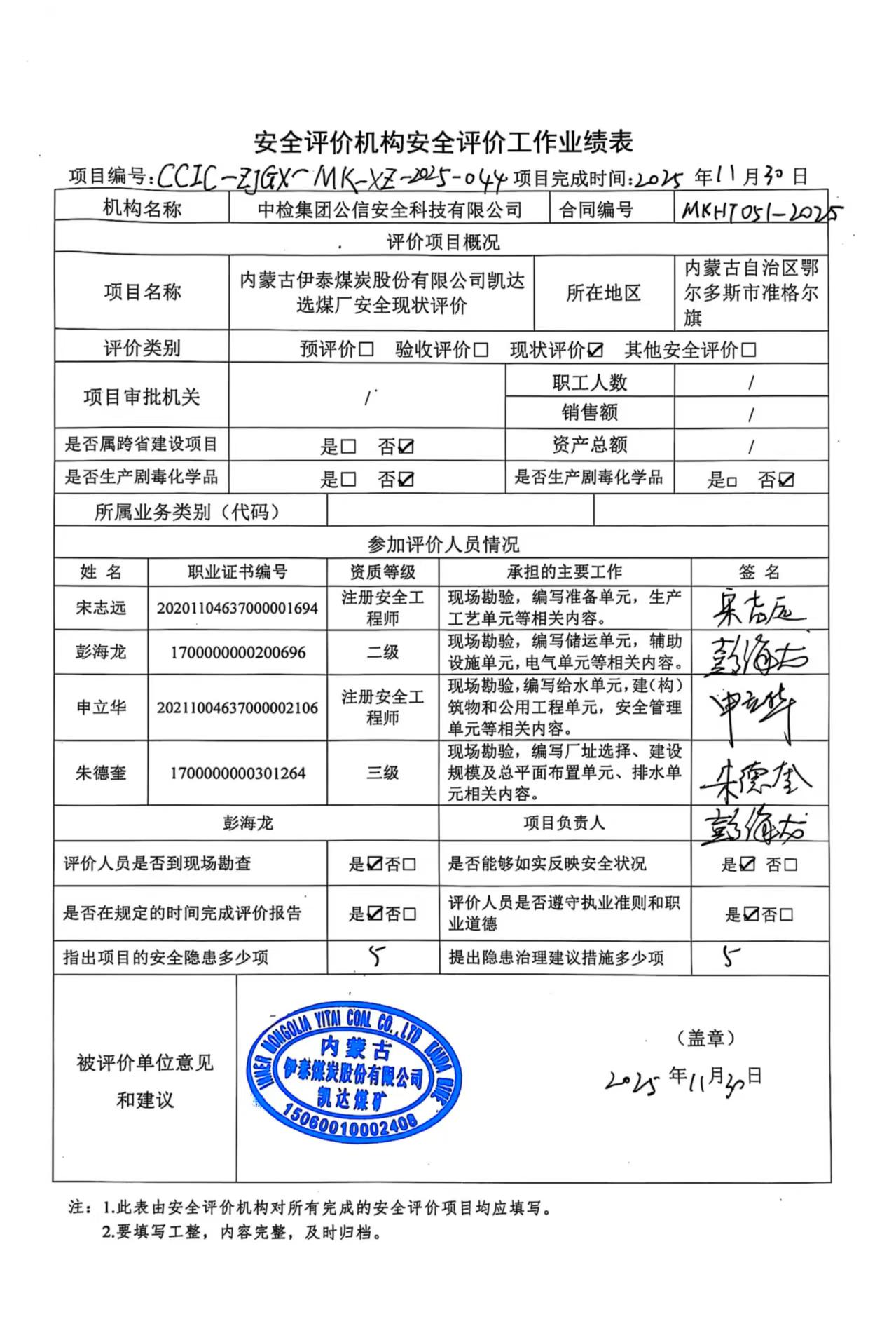 評價項目名稱 | 內(nèi)蒙古伊泰煤炭股份有限公司凱達選煤廠安全現(xiàn)狀評價報告 | ||||||