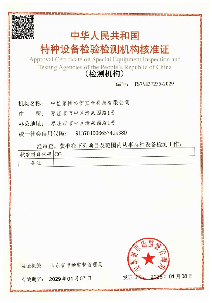 機(jī)構(gòu)名稱:中檢集團(tuán)公信安全科技有限公司證書編號(hào):TS7VⅡ37235-2029 有效期至:2029年1月7日