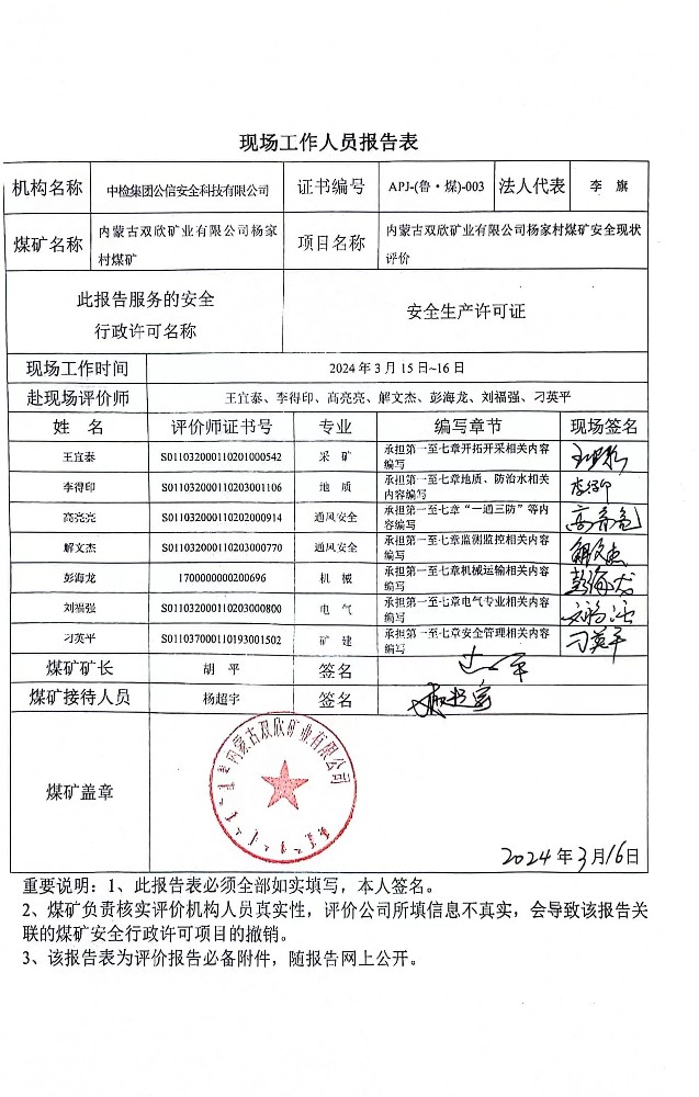 2內(nèi)蒙古雙欣礦業(yè)有限公司楊家村煤礦安全現(xiàn)狀評價報告