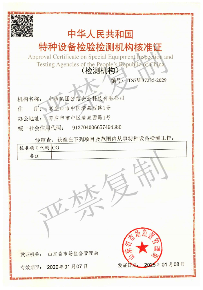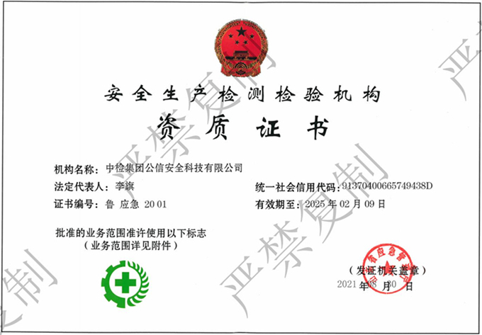 機(jī)構(gòu)名稱:中檢集團(tuán)公信安全科技有限公司證書編號(hào):APJ-(魯)-014有效期至:2030年01月07日