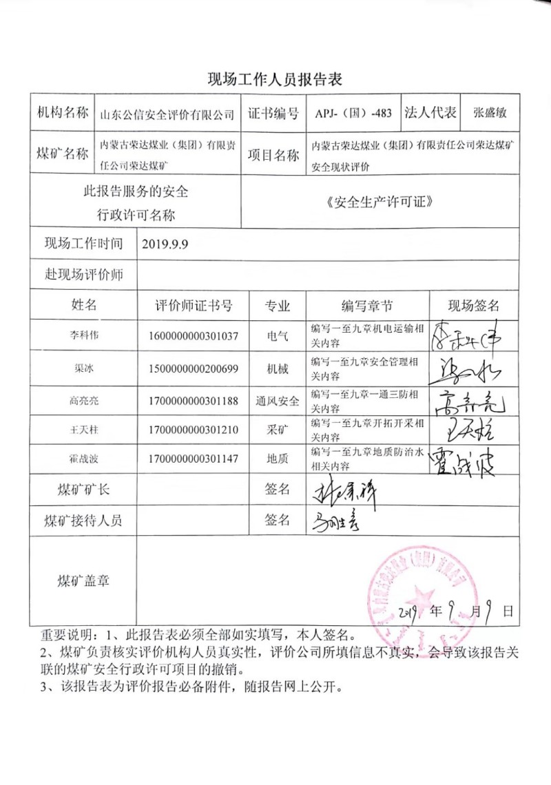 安全評(píng)價(jià)報(bào)告網(wǎng)上公開(kāi)信息表 季度: 四季度 評(píng)價(jià)項(xiàng)目名稱(chēng) 內(nèi)蒙古榮達(dá)煤業(yè)(集團(tuán))有限責(zé)任公司榮達(dá)煤礦安全