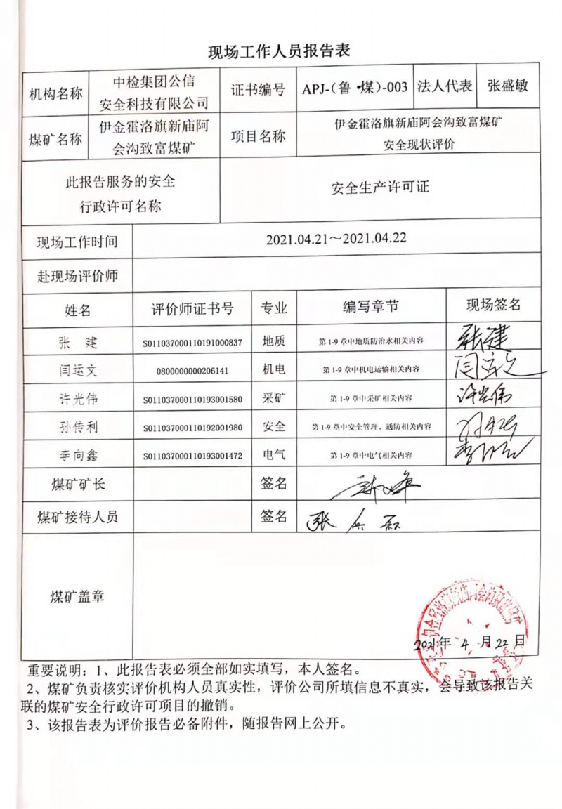 2021年第3季度1.伊金霍洛旗新廟阿會(huì)溝致富煤礦安全現(xiàn)狀評(píng)價(jià)