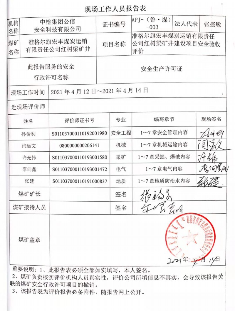 安全評(píng)價(jià)報(bào)告網(wǎng)上公開(kāi)信息表 季度:三季度 評(píng)價(jià)項(xiàng)目名稱(chēng) 準(zhǔn)格爾旗宏豐煤炭運(yùn)銷(xiāo)有限責(zé)任公司紅樹(shù)梁礦井建設(shè)項(xiàng)目
