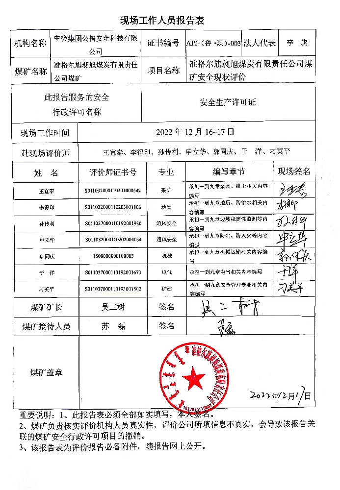 1準格爾旗昶旭煤炭有限責(zé)任公司煤礦安全現(xiàn)狀評價報告