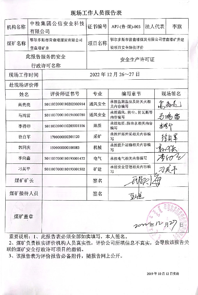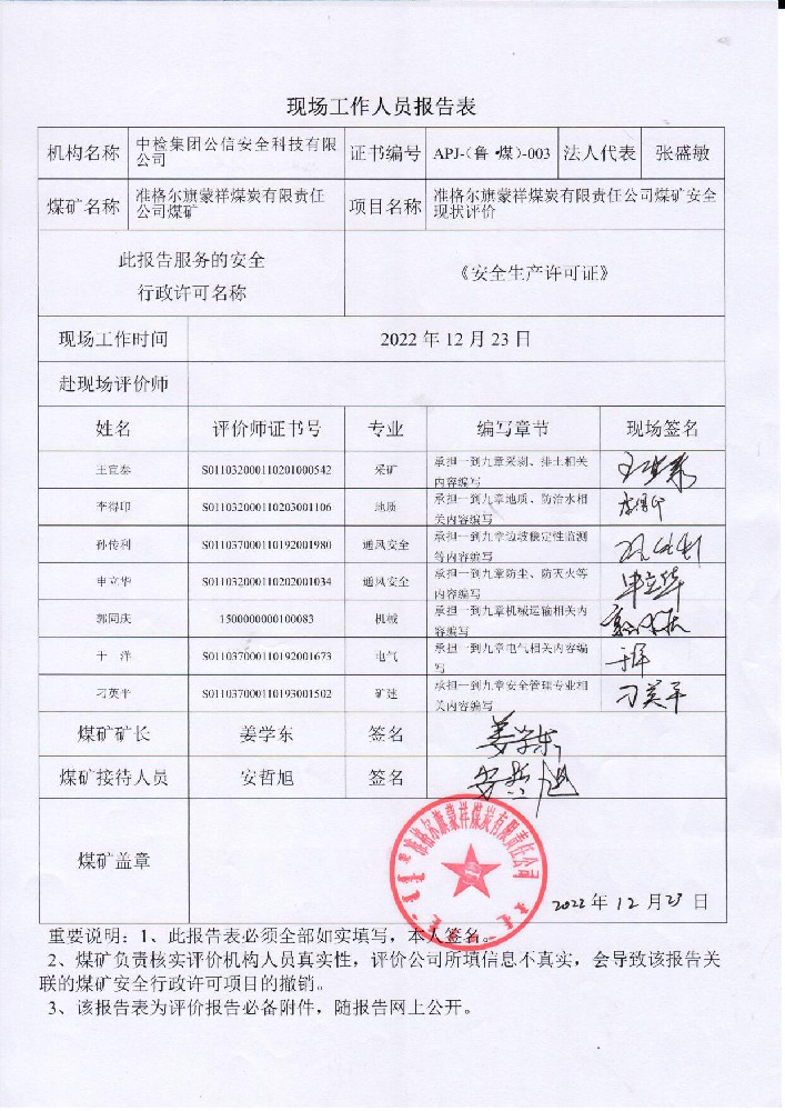 2準格爾旗蒙祥煤炭有限責(zé)任公司煤礦安全現(xiàn)狀評價報告