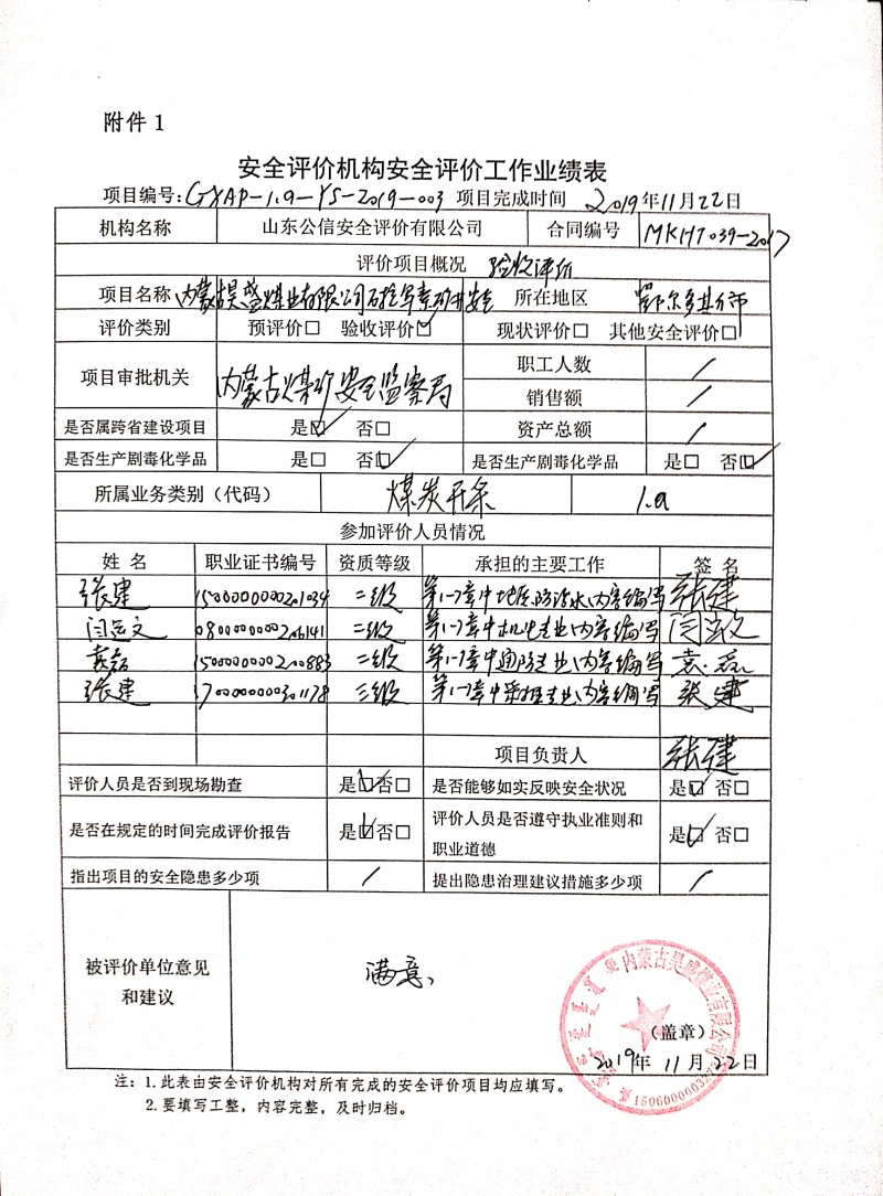 | 評價項目名稱 | 內(nèi)蒙古昊盛煤業(yè)有限公司石拉烏素礦井建設項目安全驗收評價 | ||||||