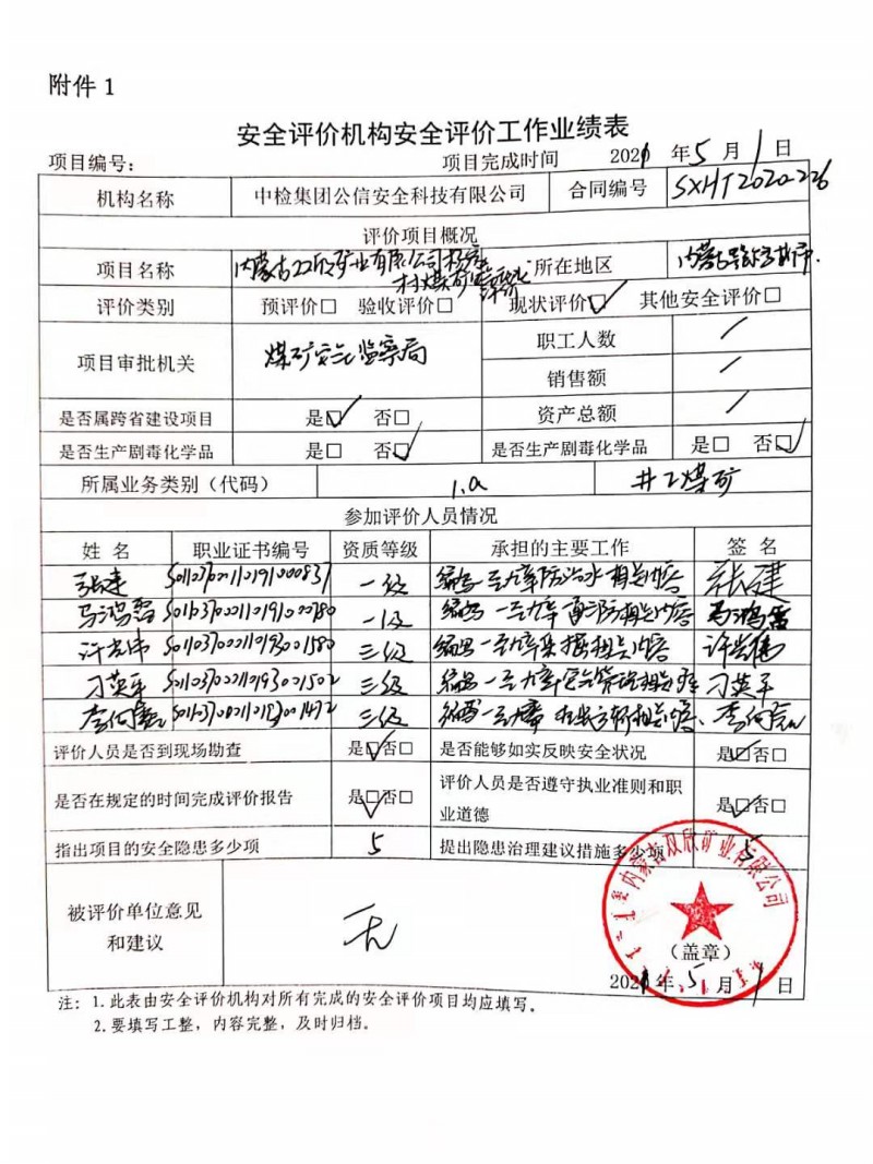 | 現(xiàn)場(chǎng)開(kāi)展安全評(píng)價(jià)工作的人員、時(shí)間及主要任務(wù): 張 建 馬鴻雷 許光偉 刁英平 李向鑫 于2021年3月7日-8日到現(xiàn)場(chǎng)進(jìn)行調(diào)查、搜集資料,進(jìn)行現(xiàn)場(chǎng)評(píng)價(jià)。 于2021年3月15日到現(xiàn)場(chǎng)評(píng)價(jià)時(shí)存在的問(wèn)題進(jìn)行了復(fù)查。 |