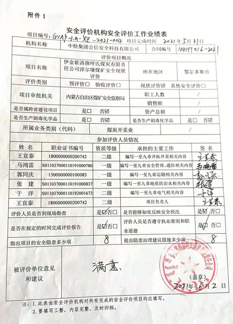 | 評(píng)價(jià)項(xiàng)目名稱 | 伊金霍洛旗呼氏煤炭有限責(zé)任公司淖爾壕煤礦安全現(xiàn)狀評(píng)價(jià)報(bào)告 | ||||||