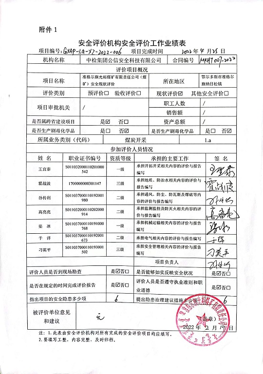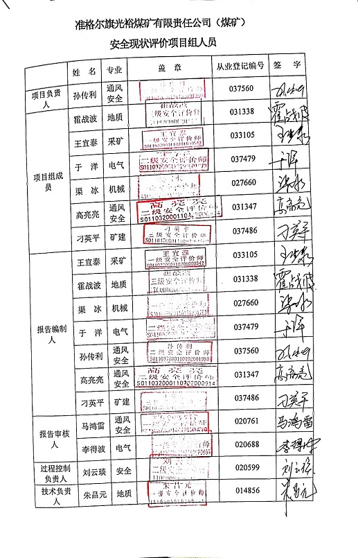| 評(píng)價(jià)項(xiàng)目名稱(chēng) | 準(zhǔn)格爾旗光裕煤礦有限責(zé)任公司(煤礦)安全現(xiàn)狀評(píng)價(jià)報(bào)告 | ||||||